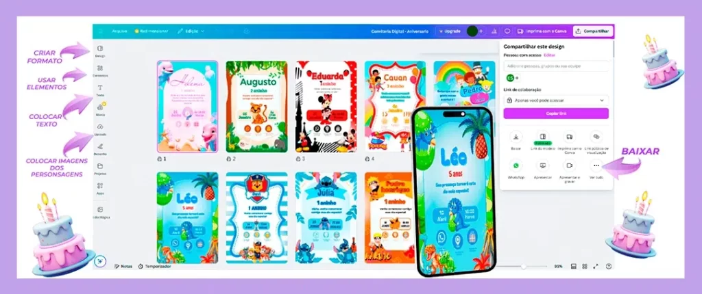 Eu montei um pack com mais de 200 modelos de convites para todas as ocasiões.